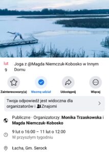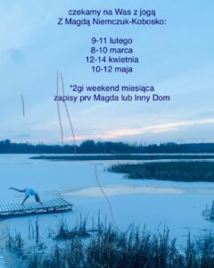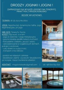 Nadchodzące warsztaty 2024 18-25.01.2024 – wyjazd na Teneryfę z Magdą Kobosko ( Prana Studio ) 9-11.02.204 joga z Magdą Kobosko ( Prana Studio) w Innym Domu. Weekendowy wyjazd z wyżywieniem.us leo. 2gi weekend miesiąca – joga z Magdą Kobosko ( Prana Studio ) w Innym domu. Weekendowy wyjazd z wyżywieniem . 9-11.02.20248-10.03.202412-14.04.202410-12.05.2024