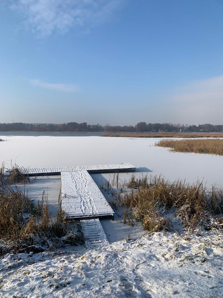 pomost – ah ten pomost, to oddzielna historia… zimą zejście do przerembla po saunie, latem obrośnięty trzcinami i miętą (!) , którą można śmiało zrywać do gotowania… niezłe miejsce na jogę czy ślub 🙂 idealne miejsce do cumowania SUP’ów (są na wyposażeniu ) czy kajaków , podczas wycieczki na pobliską plażę lub wyspy rezerwatu .